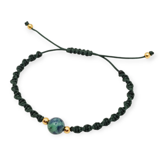 Bransoletka pleciona w kolorze zielonym z azurytem.