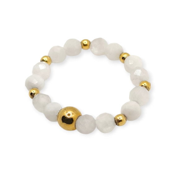 Pierścionek na gumce z kamieniami księżycowymi z elementami ze stali szlachetnej.